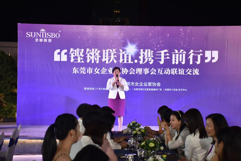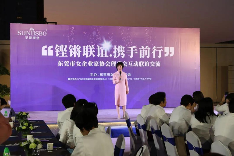 接下来,东莞市女企业家协会理事会会长叶小红女士上台发言,她表示非常感谢金年会集团集团举办此次联谊交流会,同时,对我们的产品和企业文化给出了很高的评价。她号召东莞市女企业家协会以后要更多的举办此类交流联谊活动,以此增进会员企业之间的联系和了解,为未来进一步交流发展开创新局面!她希望我们能携手同行,强强联手,共赢未来,共创新辉煌!
