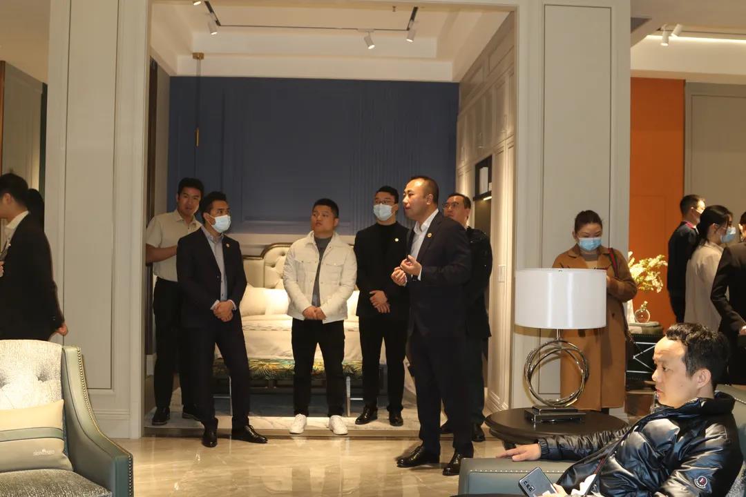 在新品系列展厅内,金年会集团集团营销部总经理陈玉伟先生对【圣蒂斯堡.迪尚】新品、及【圣蒂斯堡.新古典】升级新品的产品革新、空间打造、及营销赋能、拎包项目优势、未来市场剖析等方面进行了多维度的阐述。他表示随着消费者审美升级,对于高品质高颜值家居的追求也与日俱增,圣蒂斯堡“移动家具+整装定制”的整合优势一直紧贴时代趋势和潮流,必将赢得更加广阔的市场蓝海、和更多的消费者认可和信赖。